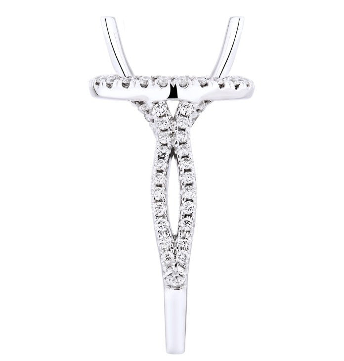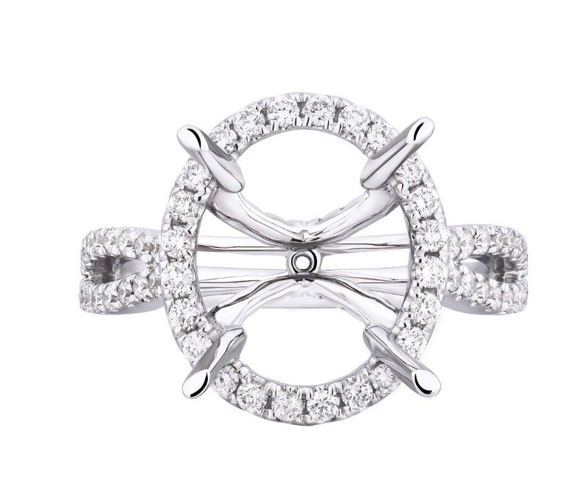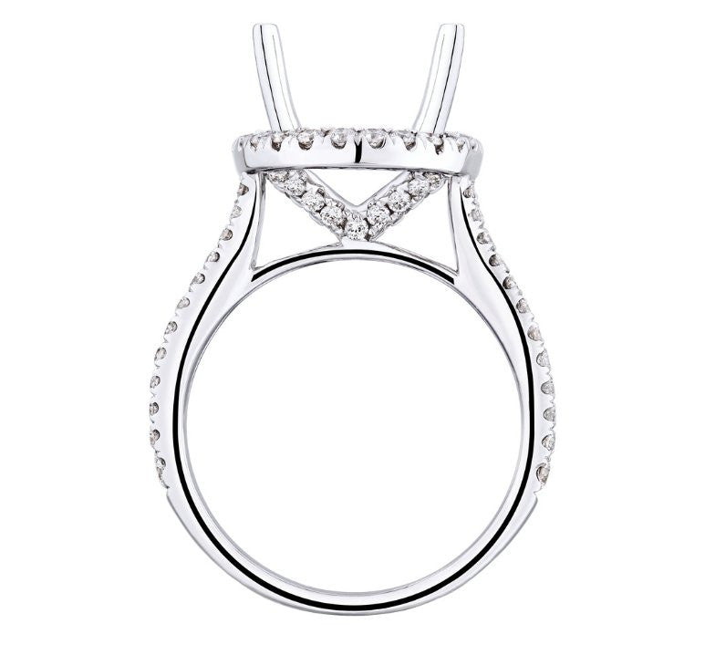 An elegant oval halo setting. Carat weights and metals can vary between 14/18k white, rose, yellow gold, platinum. This particular setting has 0.80ctw. Priced in 18kw gold.